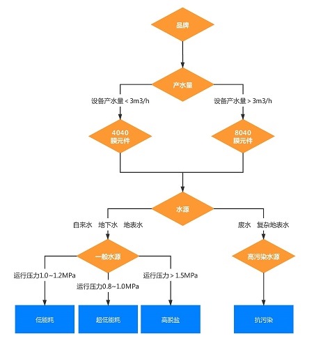 1)反滲透設(shè)備<3m3/h的多選用4040膜元件;