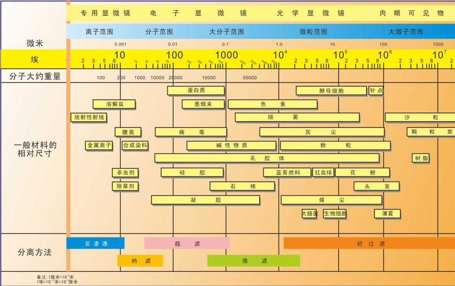 納濾膜一般應用于飲用水的濃度凈化、水軟化、有機物和生物活性物質的除鹽和濃縮、水中三鹵代物前軀物的去除、不同分子量有機物的分級和濃縮、廢水脫色、脫除井水的硬度及放射性鐳、濃縮食品以及分離藥品中的有用物質等領域。
